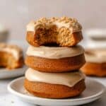 Keep baked pumpkin donuts covered tightly at room temperature for 1 to 2 days. For longer storage, refrigerate them up to 1 week. Before serving, bring to room temperature or warm slightly for best texture. If iced, the glaze sets after about an hour, making them easy to stack and transport.
