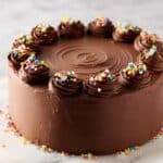 This Best Chocolate Cake recipe delivers a rich, moist, and decadent dessert perfect for any special occasion or chocolate craving. Made with Dutch-process cocoa, instant espresso powder to enhance the chocolate flavor, and a tender crumb from sour cream and oil, this cake is frosted with silky chocolate buttercream for the ultimate indulgence.