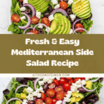 A fresh and vibrant simple side salad featuring mixed greens, cucumbers, cherry tomatoes, red onions, kalamata olives, and feta cheese, tossed in a tangy homemade balsamic vinaigrette. Perfect as a quick, healthy complement to any meal.