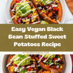 Keywords: Black bean stuffed sweet potatoes, vegan sweet potato recipe, plant-based stuffed potatoes, healthy vegan dinner, gluten-free vegan meal