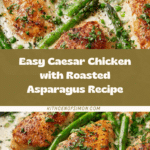 A delicious and easy-to-make Caesar Chicken with Asparagus recipe featuring tender chicken breasts coated in creamy Caesar dressing and Parmesan cheese, baked alongside seasoned asparagus for a wholesome and flavorful meal.