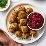 Delicious and juicy cheese stuffed meatballs made with lean ground beef and creamy brie cheese, seasoned with a flavorful blend of herbs and spices, then air fried to perfection for a crispy exterior and melty cheesy center. Perfect as an appetizer or main dish served with tangy cranberry sauce.