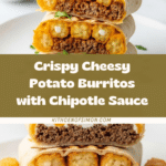 This Cheesy Potato Burritos Comfort Meal Recipe combines crispy tater tots, seasoned ground beef, and a blend of melted cheddar and monterey jack cheeses wrapped in soft flour tortillas. Enhanced with chipotle sauce and sour cream, it’s a hearty and satisfying dish perfect for a cozy family dinner or casual gathering.