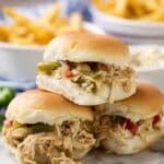 These Chicken Fajita Sliders combine tender shredded chicken with sautéed peppers and onions, melted pepper jack cheese, and a flavorful chili seasoning. Perfect for a casual gathering or game day, they’re easy to prepare and packed with Tex-Mex flair.