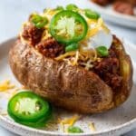Store leftover chili in an airtight container in the refrigerator for up to 4 days. Reheat gently on the stovetop or in the microwave, adding a splash of water if the chili has thickened. Baked potatoes are best enjoyed fresh but can be wrapped and refrigerated for up to 2 days; reheat in the oven to maintain texture.