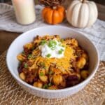 Keywords: Chili Mac, slow cooker chili, ground beef chili, macaroni and cheese chili, crockpot recipes, comfort food