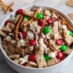 Christmas Crunch Mix is a festive and crunchy snack perfect for holiday gatherings. With a delightful blend of cereals, popcorn, pretzels, and colorful M&Ms, it’s both visually appealing and delicious. The melted chocolate ties all the flavors together beautifully.