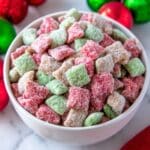 Keywords: Puppy Chow, Muddy Buddies, Christmas snack, festive treat, holiday recipe, Chex mix dessert, candy coated cereal