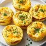 This Cottage Cheese Baked Eggs recipe is a delicious and protein-packed breakfast option featuring fluffy eggs combined with creamy cottage cheese and topped with melted cheddar. Baked in a muffin tin, these individual egg cups are perfect for a quick morning meal or meal prep. Fresh chives add a mild onion flavor and a pop of color.