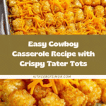 Cowboy Casserole is a hearty and comforting dish that combines savory ground beef, crispy tater tots, and melted cheddar cheese. It’s simple to prepare and perfect for family dinners or casual gatherings.
