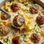 Keywords: Swedish meatball soup, creamy meatball soup, cozy winter soup, homemade meatballs, egg noodle soup, comforting soup recipe