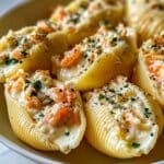 - Serve: Let the stuffed shells cool slightly. Garnish with extra Parmesan cheese or fresh herbs such as parsley, then serve warm for the ultimate comforting seafood pasta dish.
