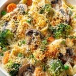 This Creamy Vegetable Casserole is a comforting and delicious dish packed with tender broccoli, cauliflower, carrots, and peas in a rich mushroom cream sauce, topped with a crispy Parmesan breadcrumb crust. Perfect for a hearty side or a vegetarian main course.