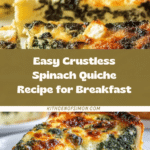 This Crustless Spinach Quiche is a flavorful and healthy dish combining sautéed onions, garlic, and fresh spinach with eggs, cream, and mozzarella cheese, all baked to a golden perfection without the need for a crust. Perfect as a nutritious breakfast, brunch, or light dinner option.