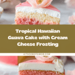 Keywords: Hawaiian cake, guava cake, tropical dessert, strawberry cake mix, cream cheese frosting, guava glaze, coconut topping