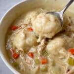 Keywords: chicken and dumplings, easy chicken recipe, comfort food, creamy chicken soup, biscuit dumplings, rotisserie chicken, homemade soup