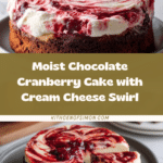 This easy chocolate cranberry cake combines rich, melted semisweet chocolate with a tangy cranberry swirl for a delightful dessert. Topped with a creamy, marbled cream cheese frosting, it’s perfect for festive occasions or any time you crave a luscious treat.