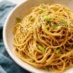 This Easy Garlic Sesame Noodles recipe is a quick and flavorful dish perfect for a simple weeknight dinner or a tasty side. Featuring spaghetti noodles tossed in a savory sauce of soy, rice vinegar, sesame oil, ginger, brown sugar, and fresh garlic, it’s garnished with crunchy sesame seeds for added texture and flavor. Ready in under 20 minutes, this dish brings Asian-inspired bold flavors with minimal effort.