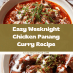 This Easy Weeknight Chicken Panang Curry is a delicious and comforting Thai-inspired dish that comes together quickly. With tender chicken simmered in rich coconut milk and fragrant spices, it’s perfect for a cozy meal any night of the week.