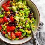 Keywords: edamame salad, black bean salad, corn salad, vegan salad, healthy salad, avocado salad, lime dressing