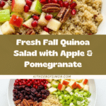 This Fall Quinoa Salad is a vibrant mix of fresh apples, pears, pomegranate, and pecans tossed with fluffy quinoa and a tangy maple-orange dressing. It’s a refreshing and wholesome dish perfect for celebrating the flavors of the season.