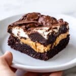 Keywords: Fluffernutter brownies, chocolate peanut butter brownies, marshmallow brownies, layered brownies, fudgy brownies, peanut butter brownies