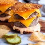 - Make sure to press the patties thin for quick, even cooking and maximum cheesiness.