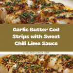 These Garlic Butter Cod Strips with Sweet Chili Lime Sauce offer a bright, flavorful twist on a classic seafood dish. Tender cod strips are pan-seared and coated in a fragrant garlic butter, then served with a tangy, slightly sweet chili lime sauce. It’s a simple yet impressive recipe perfect for a quick weeknight dinner or casual entertaining.