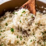 Garlic Parmesan Rice is a creamy, flavorful side dish made by toasting garlic and rice in butter, then simmering it in savory chicken broth with seasonings. Finished with parmesan cheese and a splash of milk, this comforting rice recipe is perfect as a quick and easy accompaniment to any meal.