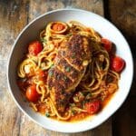 This Garlic Tomato Chicken with Mozzarella is a flavorful and comforting dish perfect for any night of the week. Tender chicken fillets simmer in a rich tomato sauce, topped with melted mozzarella and fresh basil for a satisfying meal.