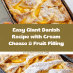 This Giant Danish recipe features a flaky crescent roll crust layered with a rich, creamy cheese filling and your choice of fruit pie filling. It’s an easy-to-make dessert that combines buttery dough, tangy cream cheese, and sweet fruit in a stunning, shareable pastry—perfect for brunch, potlucks, or any special occasion.