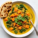This warming Ginger Sweet Potato and Coconut Milk Stew with Lentils and Kale combines the earthiness of sweet potatoes and lentils with the creaminess of coconut milk and a fragrant blend of spices. The dish is enhanced with fresh ginger, garlic, and vibrant kale, creating a nourishing, comforting stew perfect for chilly days or anytime you crave a hearty, healthy meal.