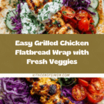 This Grilled Chicken Flatbread Wrap combines tender, smoky chicken with fresh, crisp vegetables and a creamy yogurt sauce for a light yet satisfying meal. Perfect for a quick lunch or casual dinner, it’s easy to make and full of vibrant flavors.