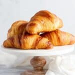 Store baked croissants in an airtight container at room temperature for up to 2 days for best texture. To refresh, warm in a 350°F oven for 5–7 minutes. Unbaked shaped croissants can be frozen before final proof step; thaw overnight in the fridge and proof before baking as directed.