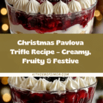 This Irresistibly Indulgent Christmas Pavlova Trifle Delight is a decadent layered dessert combining luscious custard, whipped cream, fresh summer fruits, and crunchy vanilla and flavored meringue kisses. Perfect for festive occasions, this trifle layers fruit soaked in lemon juice and sugar with silky custard and light whipped cream, topped with crisp meringues for a delightful texture contrast. The dessert is chilled to meld flavors, making it an elegant and refreshing treat.