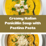 Italian Penicillin Soup is a comforting, smooth vegetable soup made with carrots, celery, onion, garlic, and parmesan rind, pureed into a velvety texture and enriched with small pasta called pastina. Finished with fresh lemon juice and garnished with parmesan and parsley, it offers a warm and soothing meal perfect for any day.