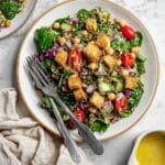 This Kale Quinoa Salad is a fresh, vibrant dish perfect for a healthy lunch or a light dinner. Packed with nutritious ingredients like kale, quinoa, and chickpeas, it combines delightful textures and bright flavors topped with a zesty lemon dressing.