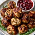 Keywords: vegan meatballs, leftover stuffing recipe, vegan sausage meatballs, plant-based meatballs, holiday leftovers, Beyond Sausage recipe