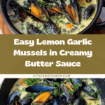 This Mussels in Lemon Garlic-Butter Sauce recipe features succulent half-shell mussels steamed in a rich, tangy sauce made from butter, white wine, fresh cream, garlic, chili flakes, and fresh lemon zest and juice. It’s an elegant yet simple seafood dish perfect as an appetizer or main course, showcasing the delicate briny flavor of mussels enhanced by aromatic herbs and a creamy citrus sauce.