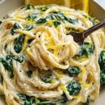 5. Toss and Serve: Stir vigorously until the sauce is smooth, creamy, and coats the pasta and spinach evenly. Serve immediately, topped with extra grated Parmesan, a drizzle of olive oil, and optional lemon wedges for added brightness.