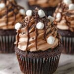 These Mississippi Mud Cupcakes are a decadent chocolate treat featuring moist cocoa-flavored cupcakes filled with gooey marshmallow fluff, topped with a rich chocolate buttercream frosting, and finished with a luscious chocolate ganache drizzle and cookie crumbles for added texture and flavor.