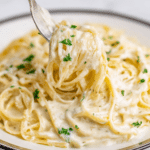 This Olive Garden Alfredo Sauce recipe recreates the rich, creamy pasta sauce loved at the famous restaurant. Made with butter, garlic, cream, milk, and Parmesan cheese, this sauce is simmered to perfection and tossed with fettuccine for a decadent Italian classic that you can easily enjoy at home.