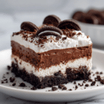 This Oreo Lasagna Chocolate Dessert is a decadent no-bake layered treat that combines a crunchy Oreo crust, a creamy cream cheese filling with Oreo chunks, a rich chocolate pudding layer, and a fluffy Cool Whip topping finished with a sprinkle of crushed Oreos. Perfect for chocolate and Oreo lovers, it’s an easy-to-make dessert that requires chilling rather than baking, making it a cool and creamy indulgence for any occasion.