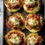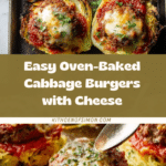 These Oven-Baked Cabbage Burgers offer a delicious low-carb alternative to traditional burgers by using roasted cabbage slices as the base. Lean ground beef patties are seasoned with fresh garlic, herbs, and spices, then topped with tomato sauce and melted cheese. Baked to perfection, these burgers deliver a flavorful, hearty meal with a satisfying combination of textures and wholesome ingredients.