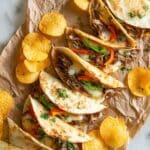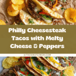Deliciously hearty Philly Cheesesteak Tacos combine the classic flavors of a Philly cheesesteak with the convenience of a taco. Sautéed shaved steak, caramelized onions, and bell peppers are seasoned with aromatic spices and melted provolone cheese, all wrapped in warm tortillas for a perfect fusion meal.