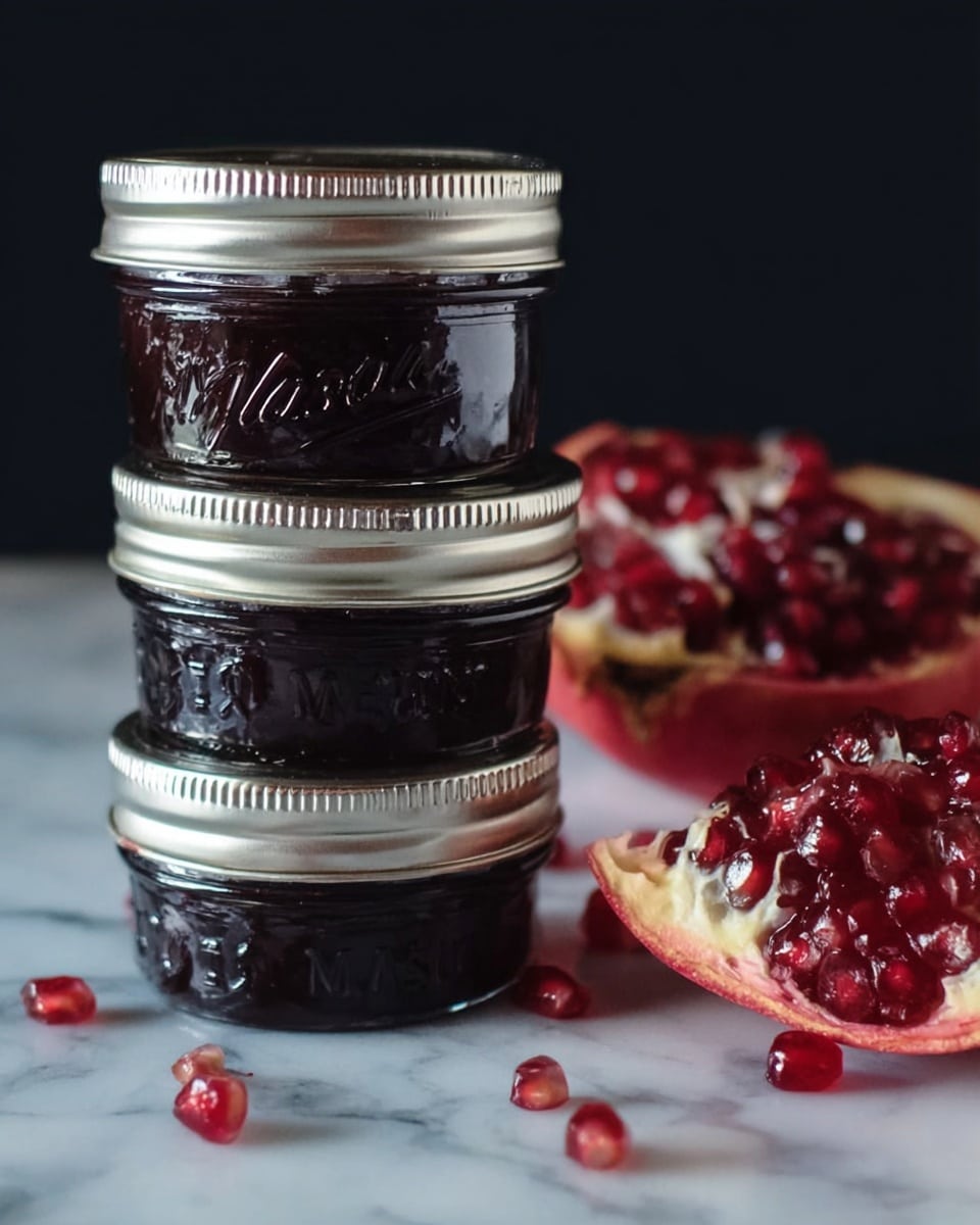 This Pomegranate Jelly recipe transforms fresh pomegranate juice into a sweet, tangy jelly perfect for spreading on toast or serving with cheese. Using pectin and lemon juice, the jelly achieves the ideal set with a burst of fruity flavor. Whether canned for long-term storage or refrigerated to enjoy fresh, this homemade jelly is a delightful way to preserve the vibrant taste of pomegranates.