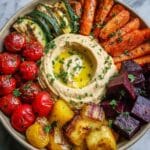 This Roasted Veggie and Hummus Bowl is a vibrant and nourishing meal full of color and flavor. Perfect for a healthy lunch or dinner, it combines caramelized roasted vegetables with creamy hummus for a satisfying dish.
