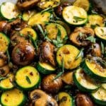 This sautéed zucchini and mushrooms dish is a golden, garlicky vegetable side that brings rich flavors to your meal. Tender zucchini and browned mushrooms are enhanced with fresh herbs and a touch of butter for a comforting, easy-to-make side.
