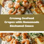 Keywords: seafood crepes, béchamel sauce, shrimp crepes, crab meat crepes, elegant crepes recipe, baked crepes, French cuisine, seafood recipe, creamy sauce, gluten-free option