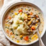 Keywords: Shepherd’s Pie Soup, creamy mashed potato soup, ground beef soup, cheesy soup, comfort food, easy dinner soup